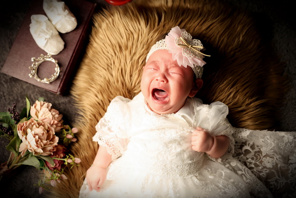 とりわけ、フォトスタジオという空間は、赤ちゃんにとって日常とは異なる刺激が多い場所です。普段とは異なる光の当たり方、聞き慣れない音、見知らぬ大人の存在、そして着慣れない衣装など、赤ちゃんの五感には多くの情報が一度に入ってきます。そのため、最初は戸惑い、不安から泣いてしまうことはごく自然な反応と言えるでしょう。